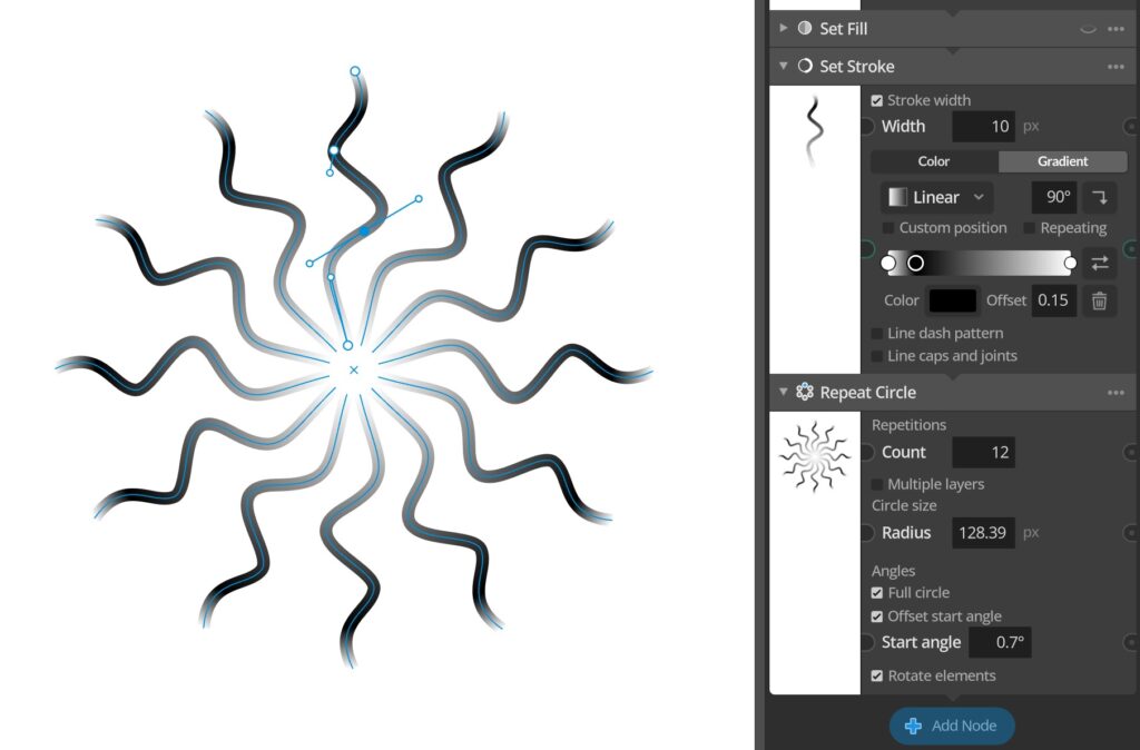 This update adds a couple of new gradient related improvements. Primarily the new feature that gradients can now also be used for stroke lines and not just fill color on path elements. To make it a little faster to work with gradients there is now also a new gradient presets option available in the right-click context menu on gradient controls where you can quickly change the gradient to one of a couple of presets.